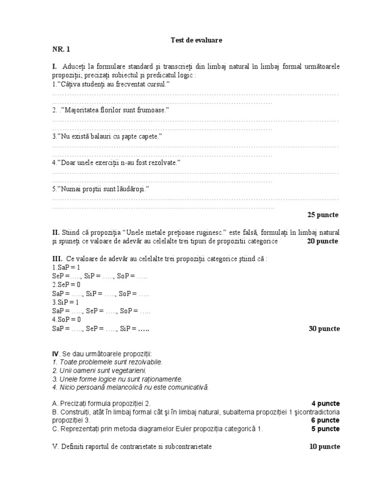 Test Propozitii Categorice