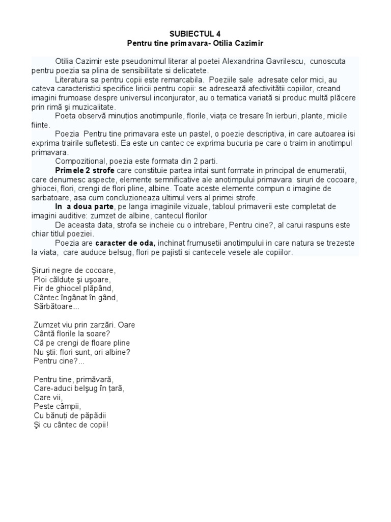 Doc Otilia Cazimir Pentru Tine Primăvară Diana Chirila