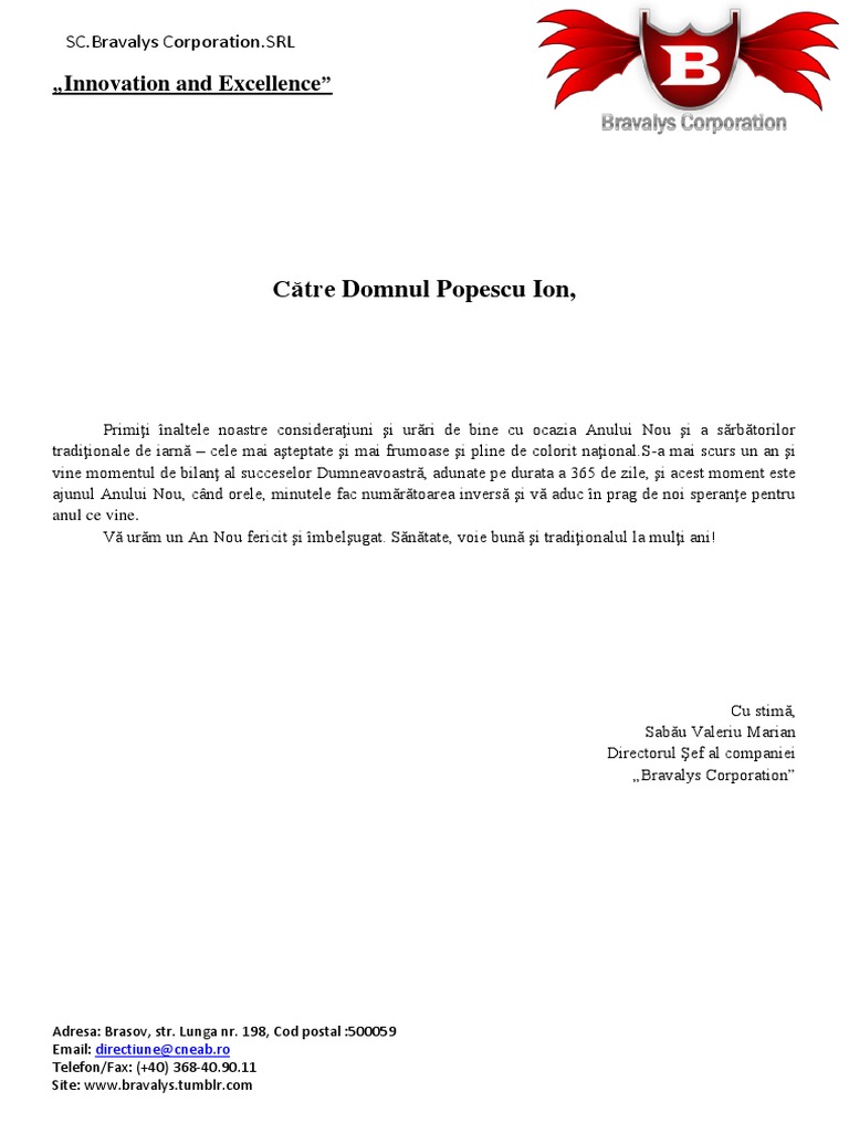 Scrisoare De Felicitare Model